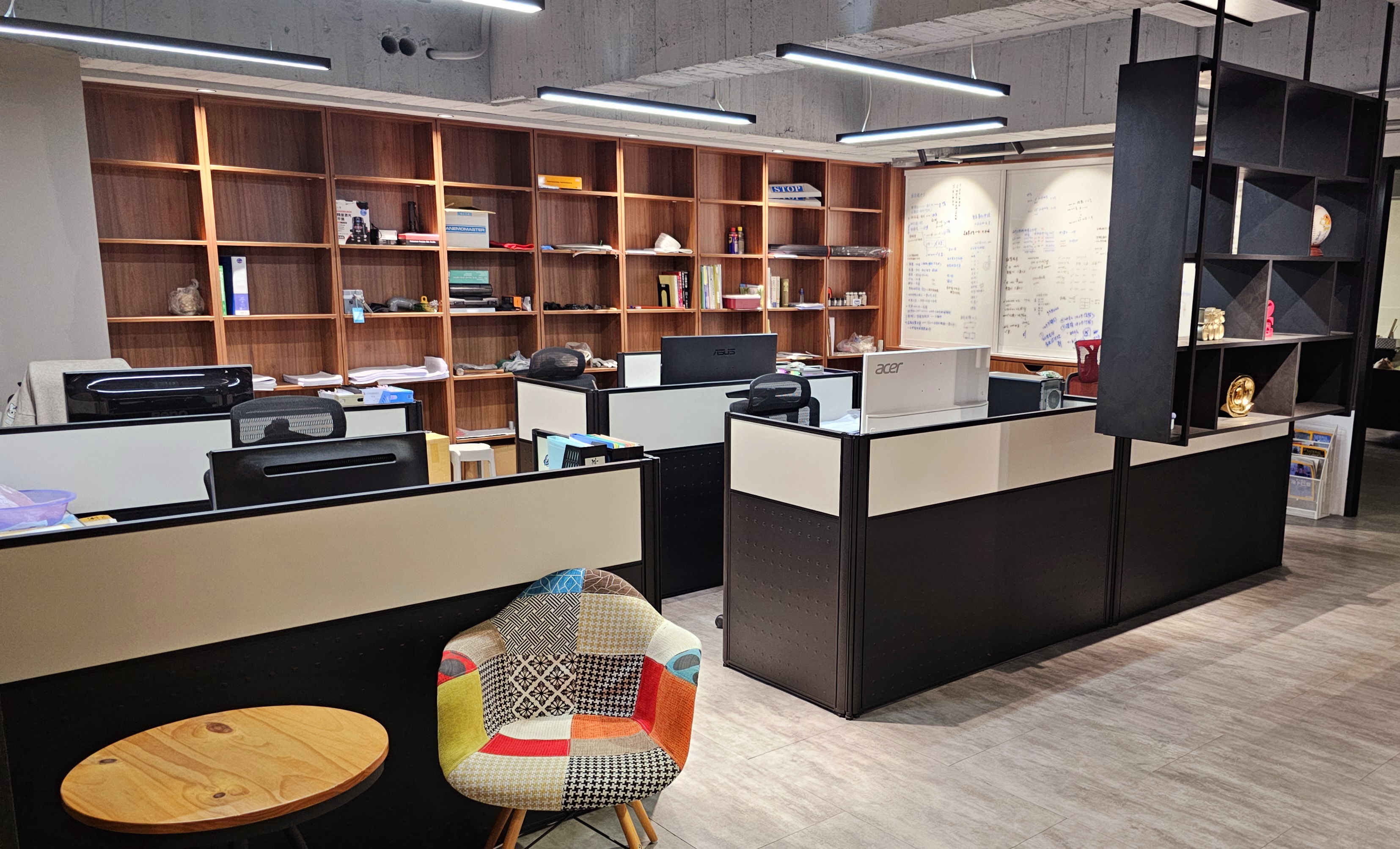 工作場域特別規劃活潑輕鬆的設計,辦公期間撥放悠揚樂章,並提供零食櫃、咖啡機等,隨時補充身心靈所需能量,為夢想目標加把勁。